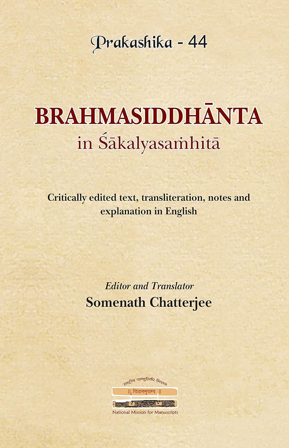 Brahmasiddhanta in Sakalyasamhita: Critically edited text, transliteration, notes and explanation in English (Prakashika – 44)